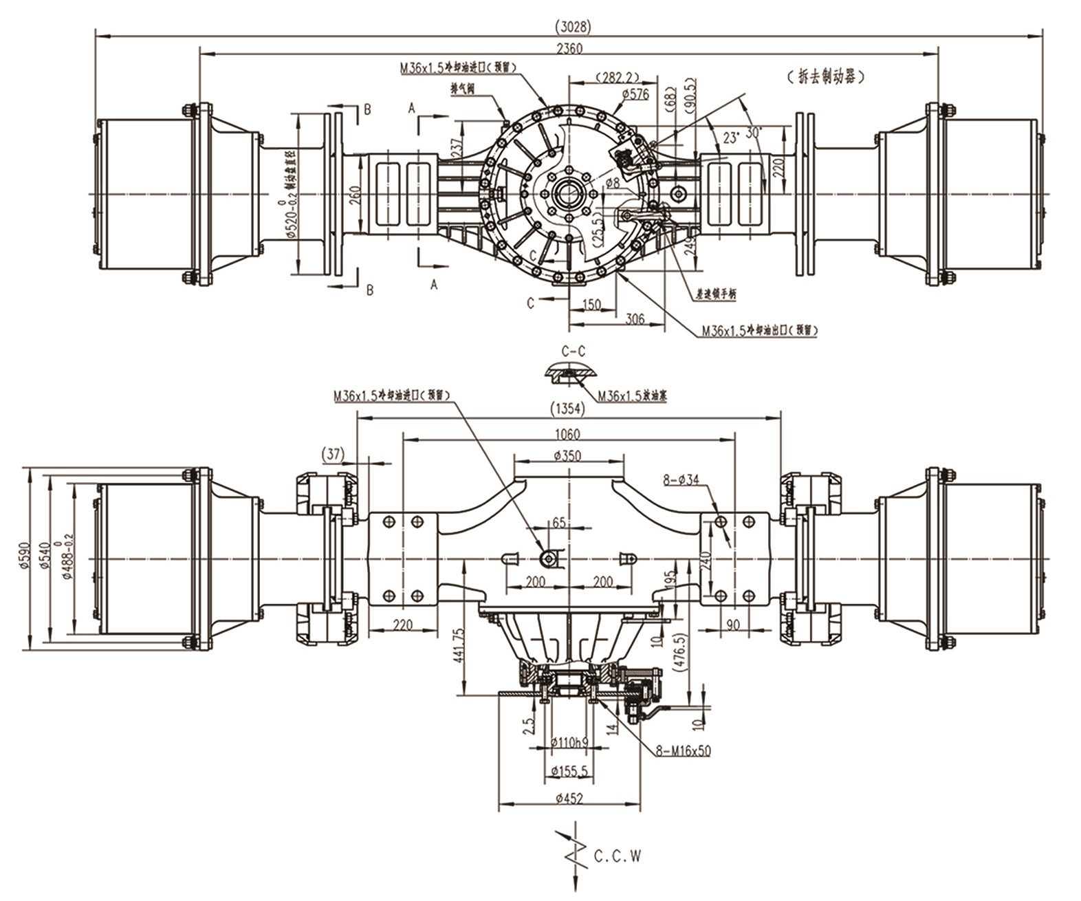 | Wheel-end speed ratio | 12.678 | Single axle load | 50000kgs | |