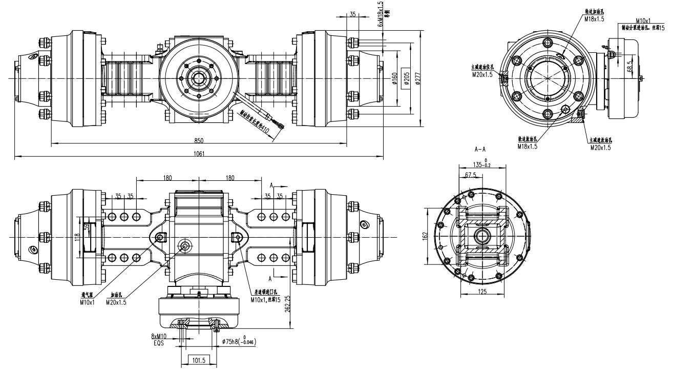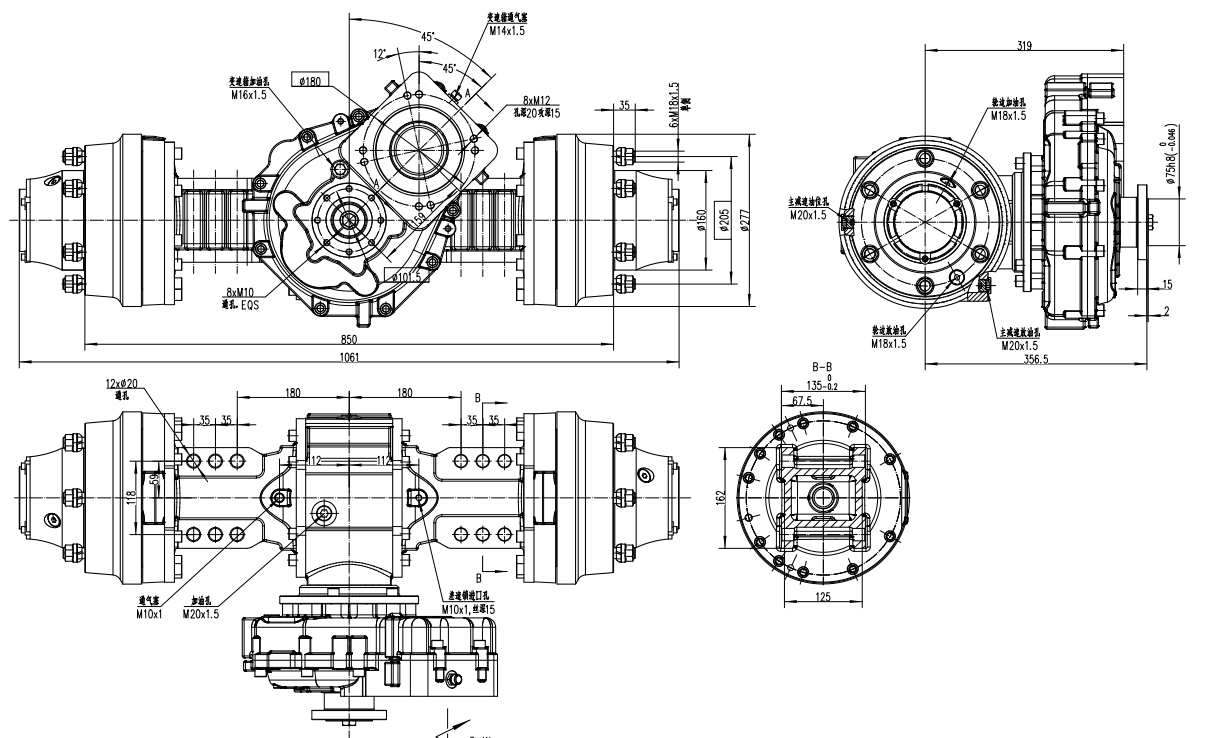 | Total reduction ratio | 26.82 | Oil filling mass | Main reducer and both sides pf wheel | 6L | |