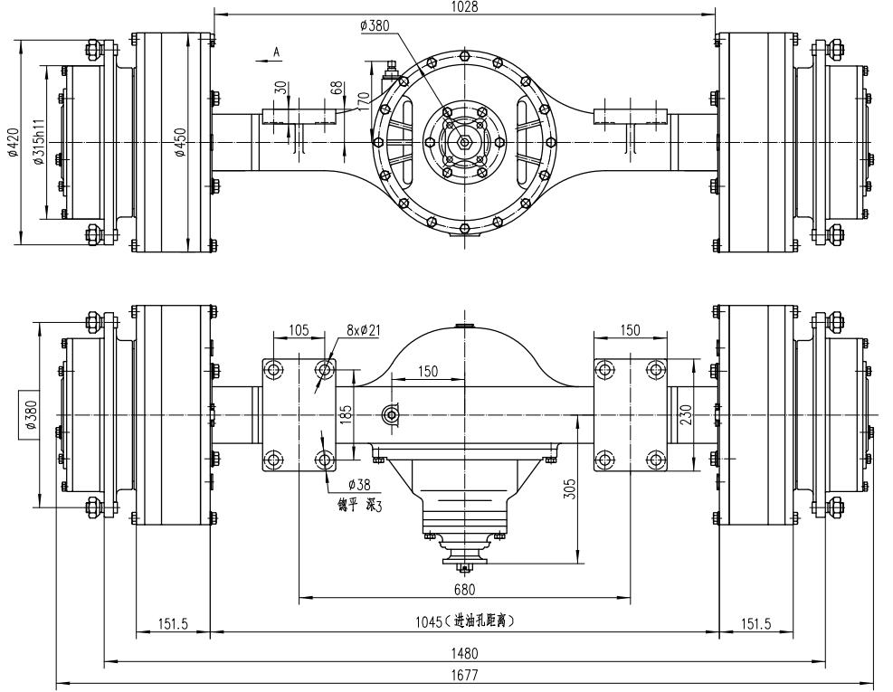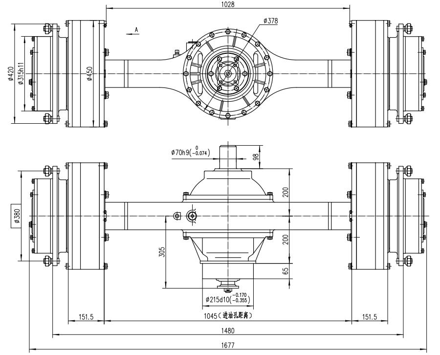 - The brake in enclosed multi-disc wet-type braking mode,with braking hub,hydraulic pressing,spring release and excellent braking performnce,is installed behind the planetray hub decelerating-gears.