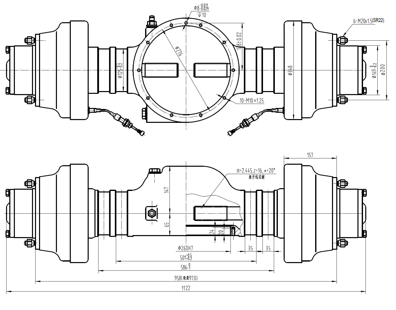 Axle housing made of cast steel with adequate rigidity has great load-carrying capacity. - Shoe brake with small volume and light weight can realize reliable braking